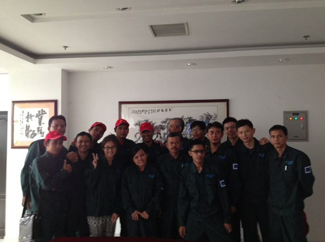 我司與印度尼西亞BAKRIE公司簽訂管道外防腐生產(chǎn)線銷售協(xié)議,2014年7月14日,BAKRIE公司員工一行15人來到我司產(chǎn)品銷售客戶海隆集團進行管道外防腐設(shè)備操作培訓。