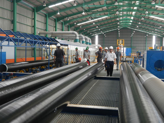 我公司與印尼PT. BAKRIE PIPE INDUSTRIES 鋼管公司簽約的整套外防腐生產(chǎn)線設(shè)備制造項(xiàng)目已于2014年11月20日順利完成安裝調(diào)試,并生產(chǎn)出了合格防腐管,這標(biāo)志著我公司進(jìn)一步擴(kuò)展了東南亞市場,為鼎盛走向世界打下堅(jiān)實(shí)的基礎(chǔ)。