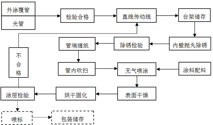 7、過渡臺架 8、鋼管內(nèi)壁噴涂設(shè)備 9、內(nèi)噴涂出管臺架 10、直線輸送輥道 11、涂層固化室 12、成品管出管臺架