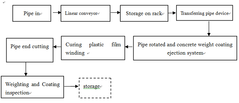 1、Production line incoming rack 2、Linear conveyor 3、Rotating transfer pipe trolley 4、Concrete mass ejection system and operation room 5、Concrete recycling belt system 6、End-of-pipe cutting device 7、Rotating pipe device 8、Weighting station 9、Transferring pipe trolley 10、Steel mesh out device 11、Concrete mixing system, Feeding station