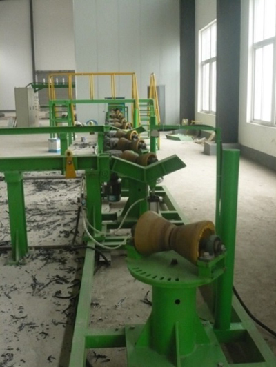 直徑較小的鋼管采用腰鼓輪一體式的螺旋輥道,安裝調(diào)整方便,角度旋轉(zhuǎn)盤一次調(diào)節(jié),螺距統(tǒng)一變化量;管底高變化量小,按鋼管管徑級(jí)別調(diào)整的功能,維修維護(hù)方便,變形量小特點(diǎn)。輪座下兩配合面之間配1~2mm聚四氟夾層,調(diào)整輪間距時(shí)簡(jiǎn)捷省力;調(diào)節(jié)精度在調(diào)節(jié)輪組處均配裝刻度尺,以便于觀察。傳動(dòng)線在調(diào)整完畢后,用鎖緊裝置將傳動(dòng)線鎖緊。并保證調(diào)節(jié)裝置能夠取下移出。